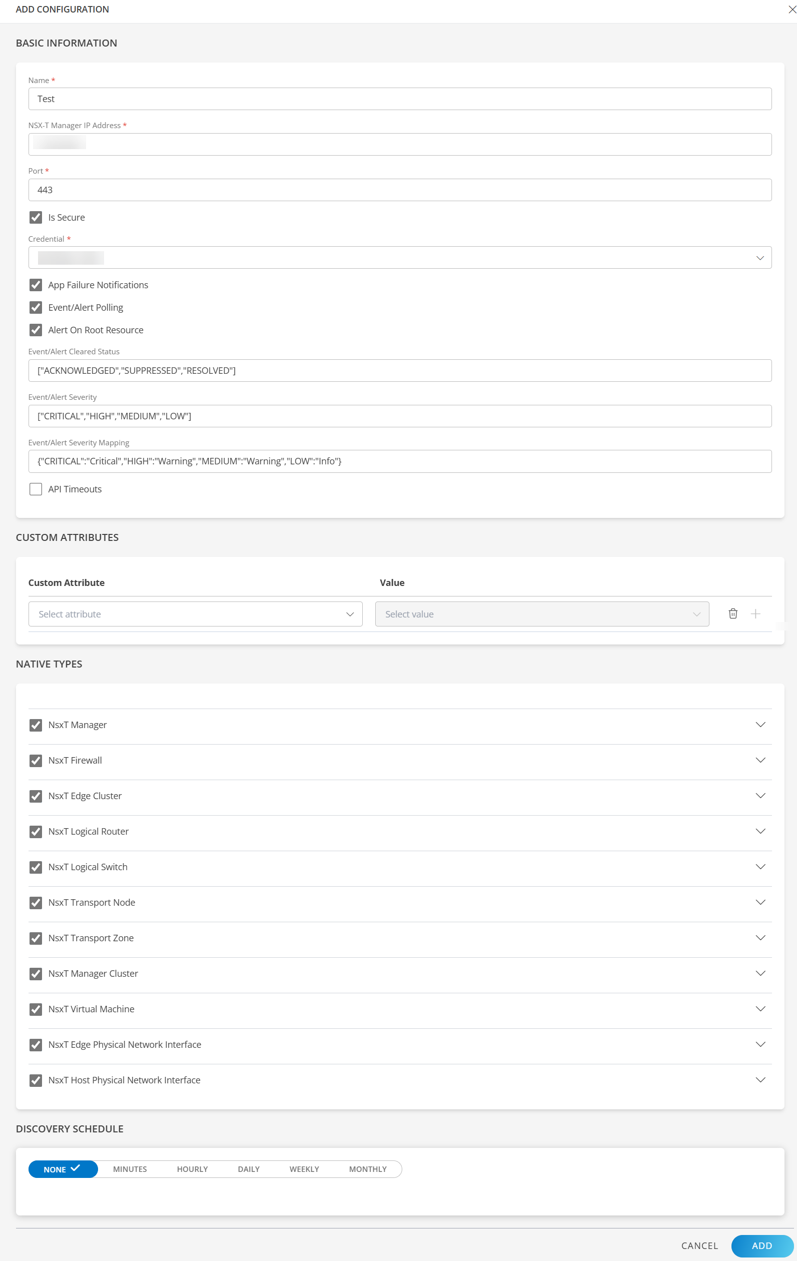 - Provide VMware NSX-T REST API credentials with minimum read-only privileges to fetch data from the end device.