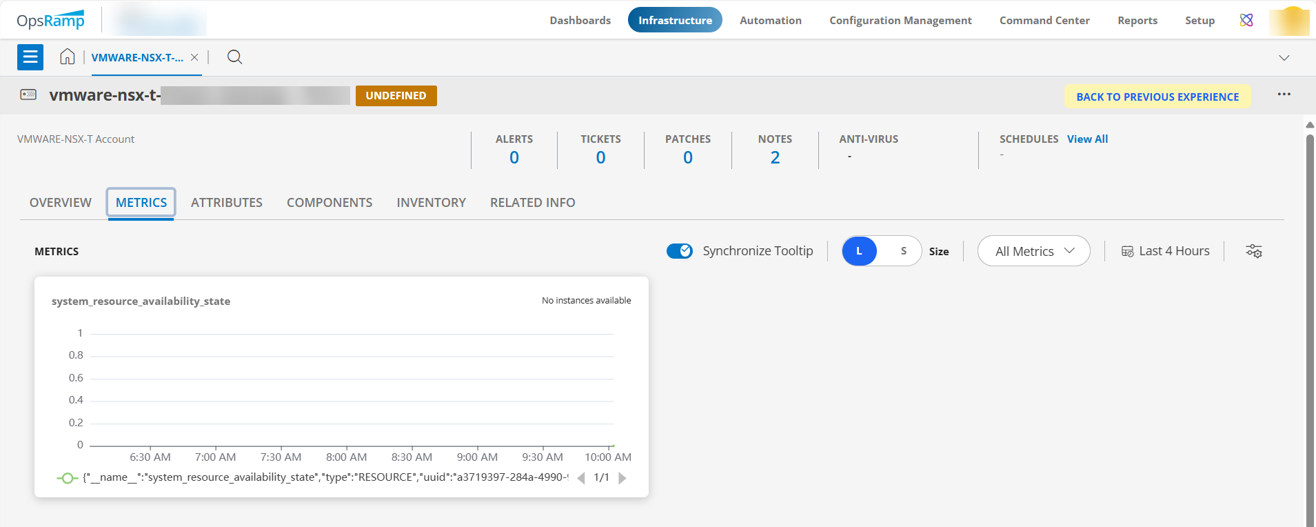 - Click the MERICS to view the metric details for VMware NSX-T.